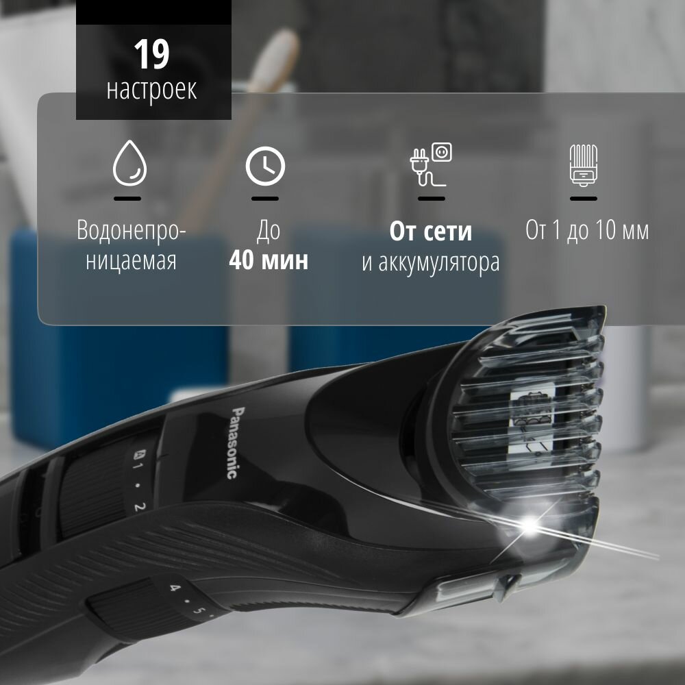 Купить Машинка для стрижки волос Panasonic ER-GC51-K520, работа от сети и аккумулятора, регулирующая насадка, электрическая