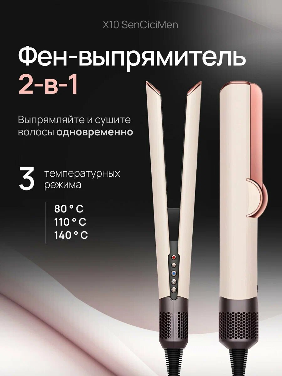 Фен-выпрямитель Sencicimen X10 2в1, 1300Вт, 3 температурных режима, автоотключение