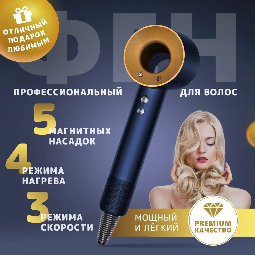СохранитьАкция! Фен для волос профессиональный, 3 температурных режима, 5 магнитных насадок/ Гарантия качества /Золотой интересное: