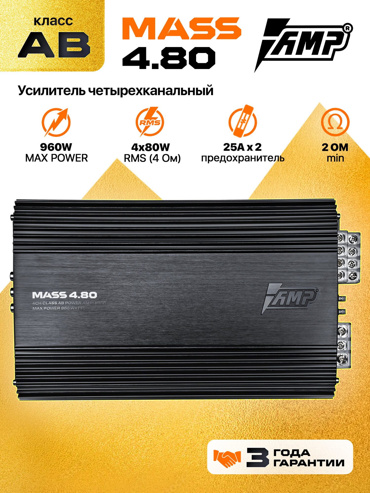 AMP MASS 4.80 Усилитель автомобильный; 4-х канальный class-AB; max 960w; min 2 Ом интересное: