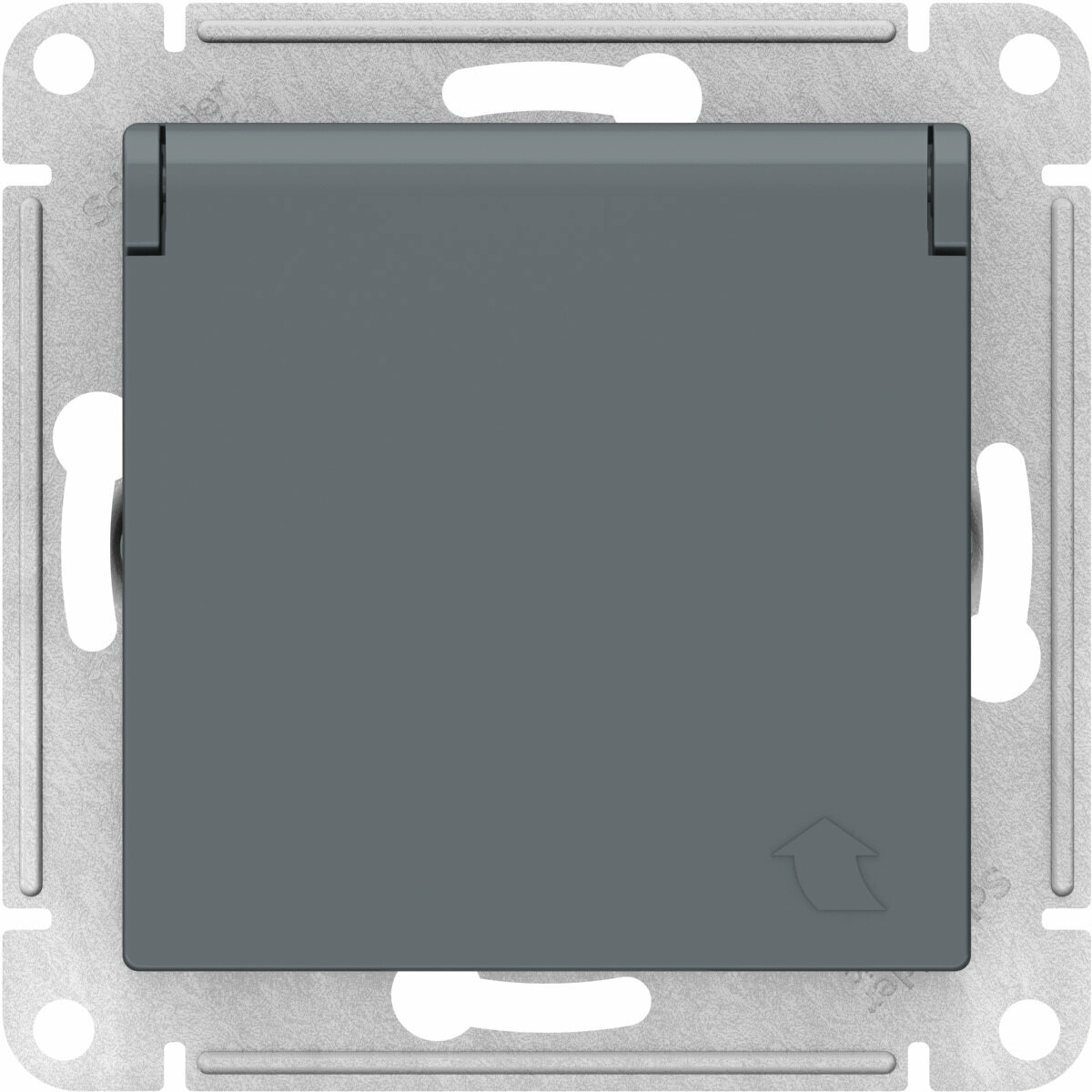 Механизм Atlas Design ATN000746 розетки "евро" со шторками с крышкой IP20 с/п грифель Schneider Elecric