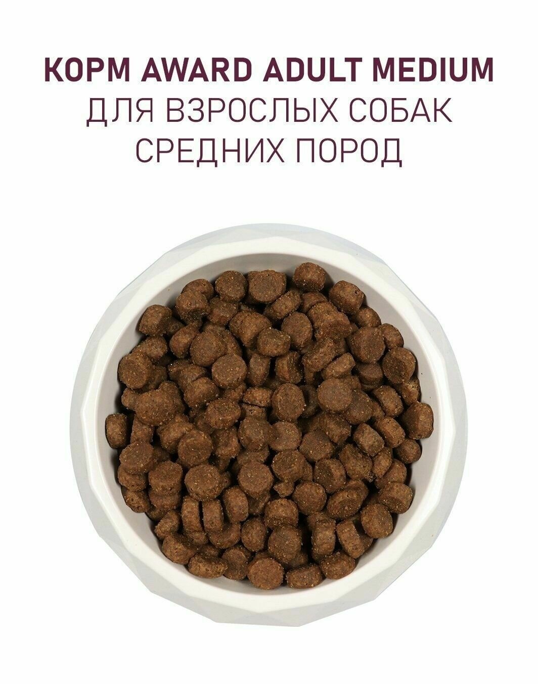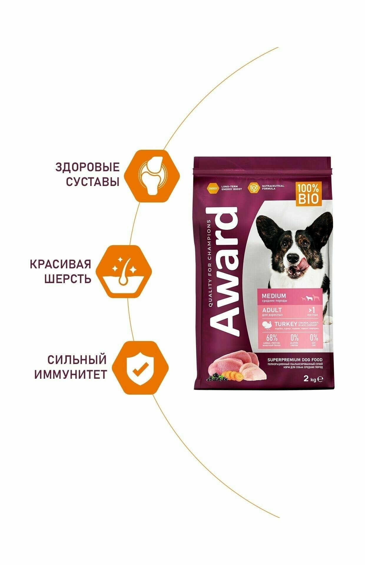 Сухой корм AWARD для взрослых собак средних пород с индейкой и курицей с добавлением моркови и черной смородины 2кг х 2 шт.