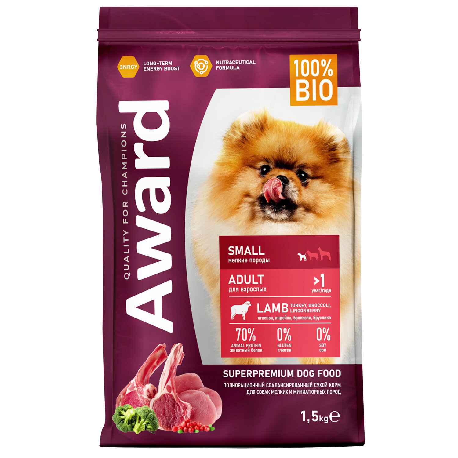 Купить Сухой корм AWARD для собак мелких и миниатюрных пород с ягненком и индейкой с добавлением брокколи и брусники 1,5кг