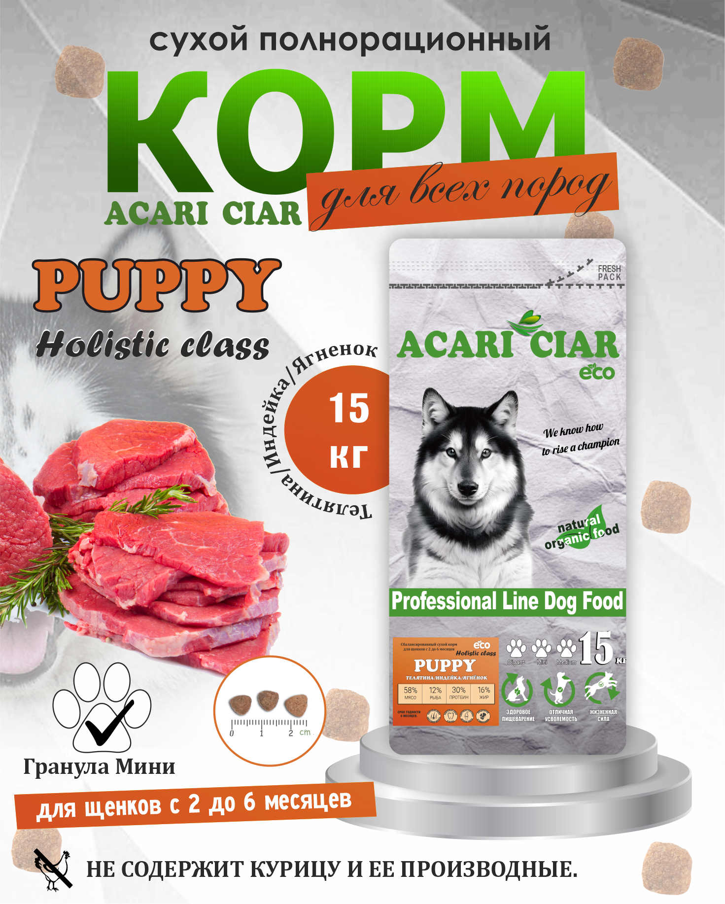 Сухой корм для щенков с 2 до 6 месяцев Acari Ciar Puppy 15 кг (гранула Мини)
