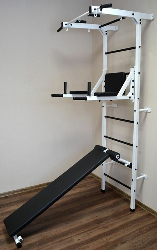 Спортивный комплекс Пионер МСК с турником, брусьями, скамьей и навесным оборудованием, цвет Бело-черный интересное: