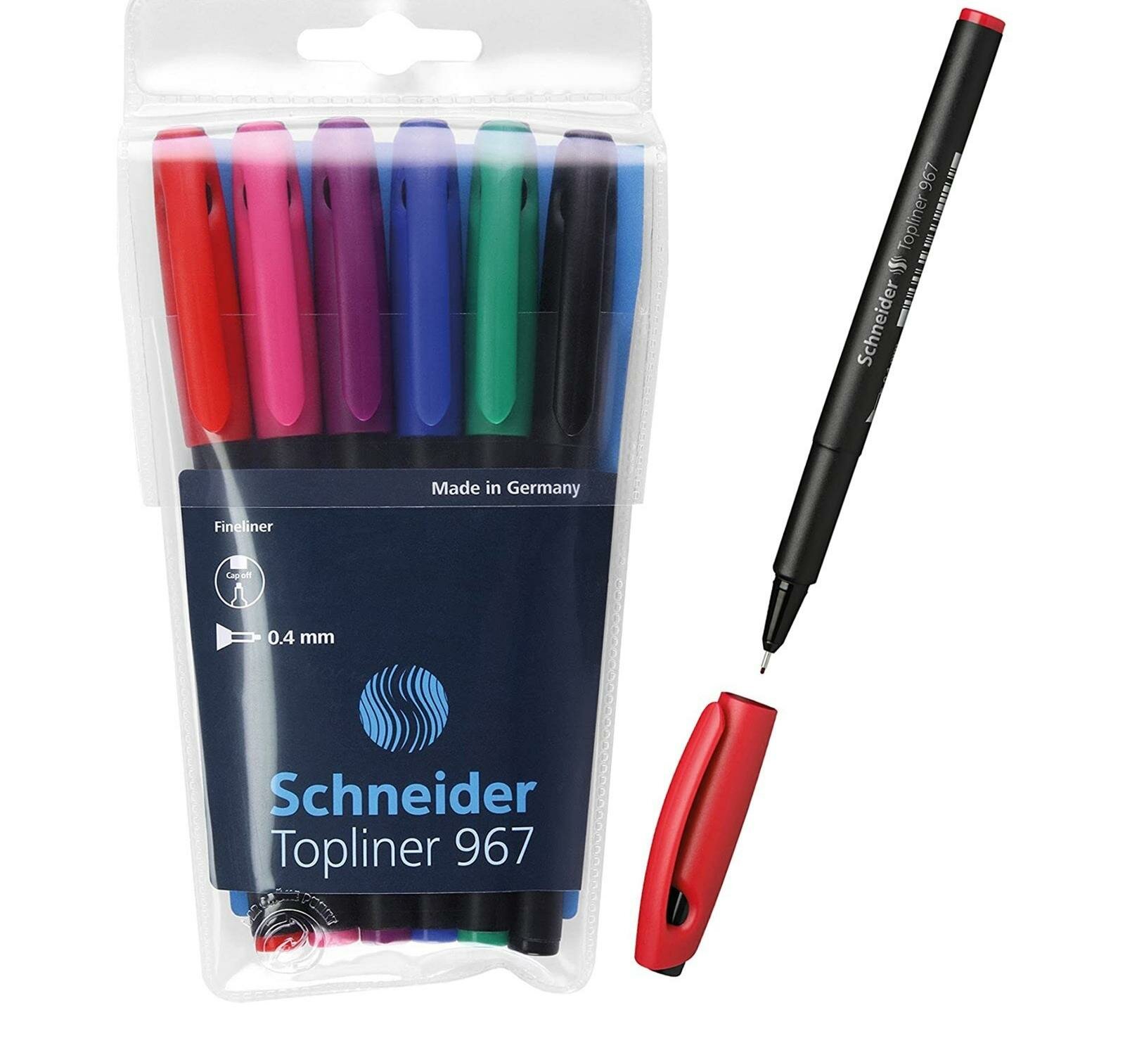 Комплект 6 шт, Набор капиллярных ручек Schneider "Topliner 967" 06цв., 0.4мм, европодвес