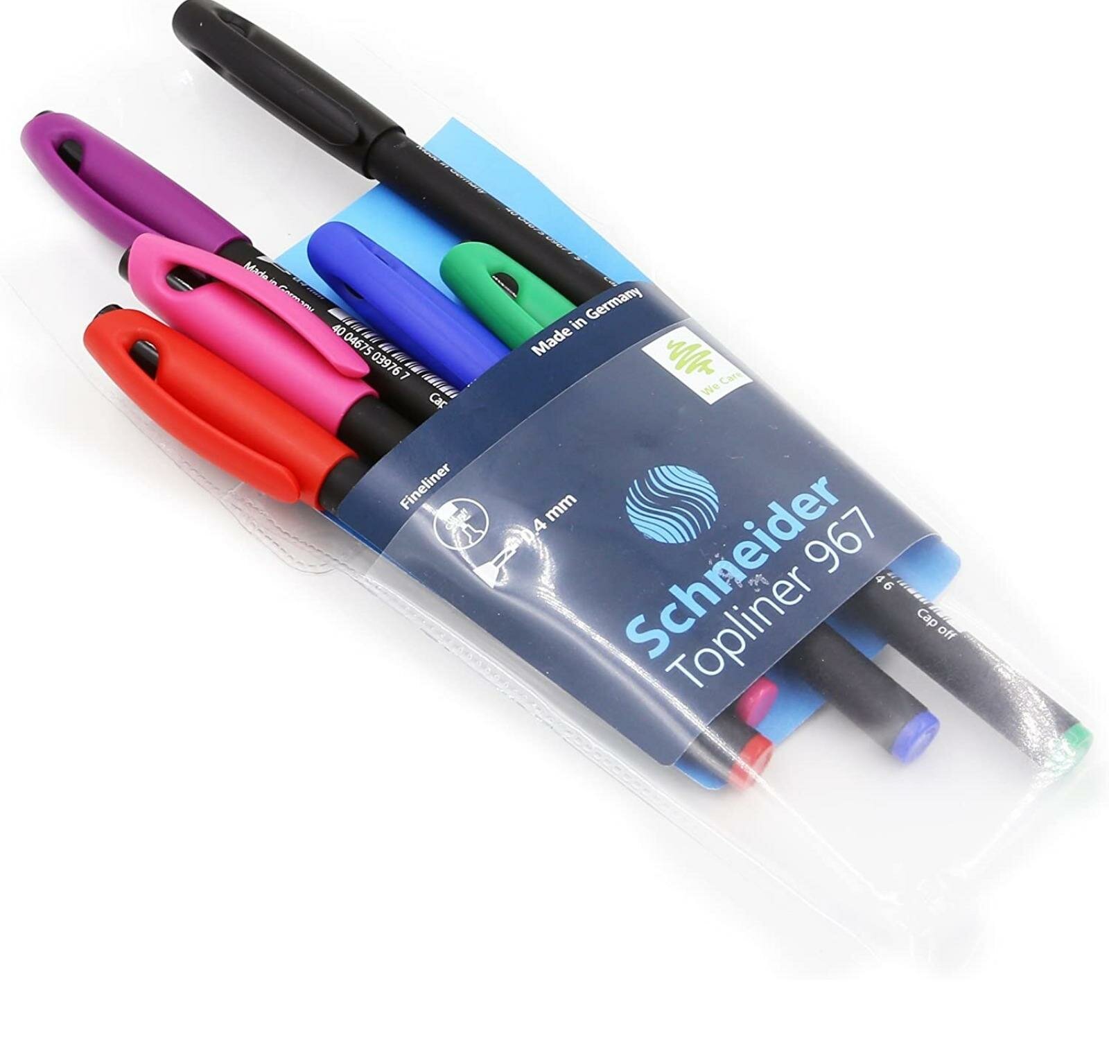 Комплект 5 шт, Набор капиллярных ручек Schneider "Topliner 967" 06цв., 0.4мм, европодвес