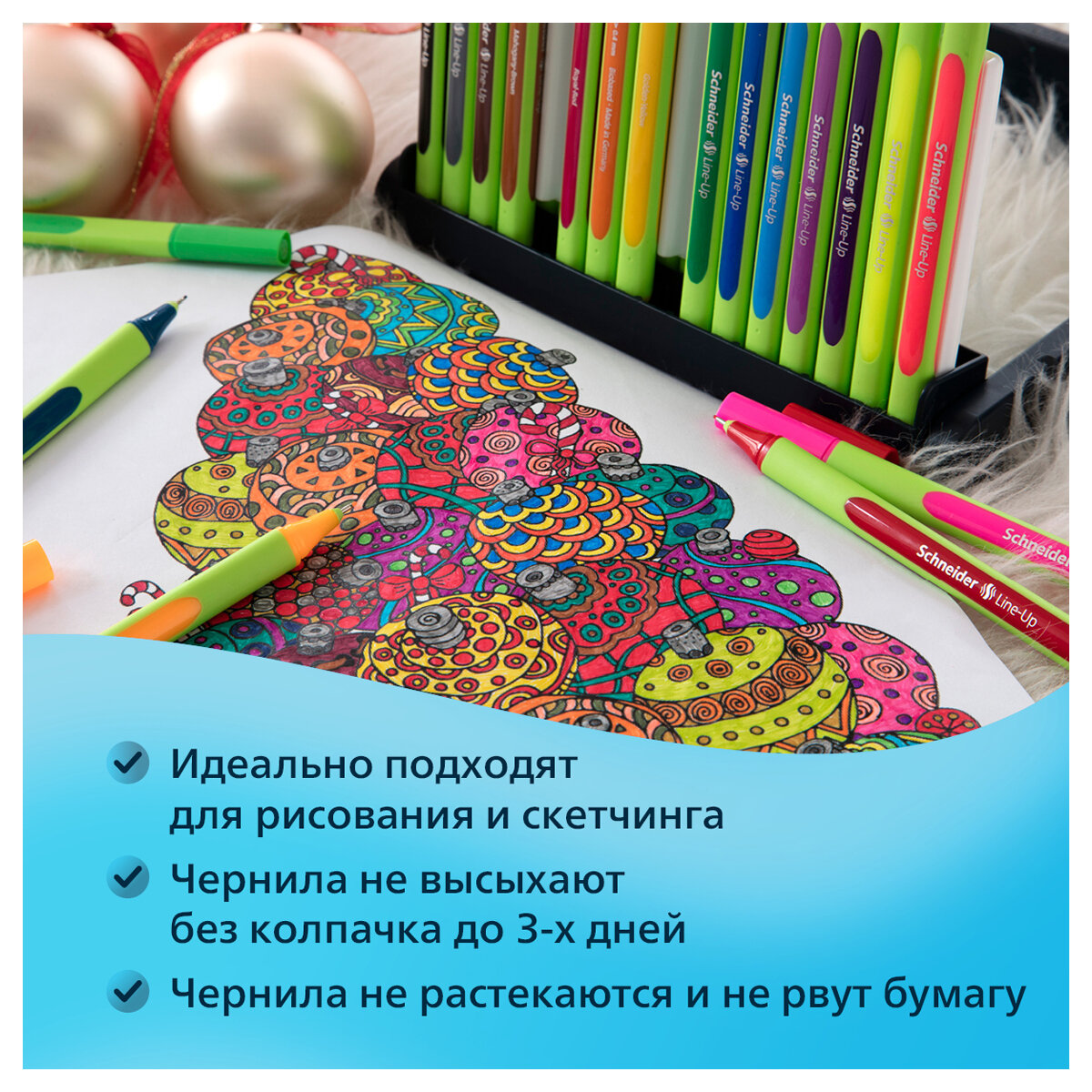 Ручки капиллярные цветные Schneider "Line-Up ", толщина линии 0,4 мм, канцелярия для школы и офиса, скетчинга, рисования, письма, набор 8 штук
