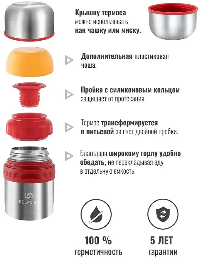 Термос для еды Relaxika R301.500.2 500мл, нержавеющая сталь