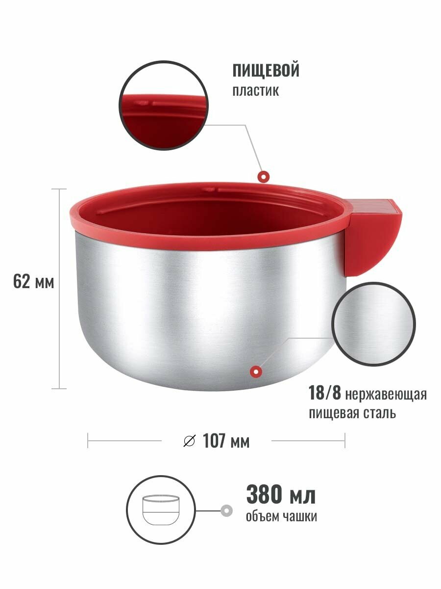 | Дополнительная информация | объем чашки: 380 мл; высота чашки: 62 мм; диаметр чашки: 105 мм; объем доп. чашки: 200 мл; высота доп.чашки: 40 мм; диаметр доп. чашки: 93 мм |