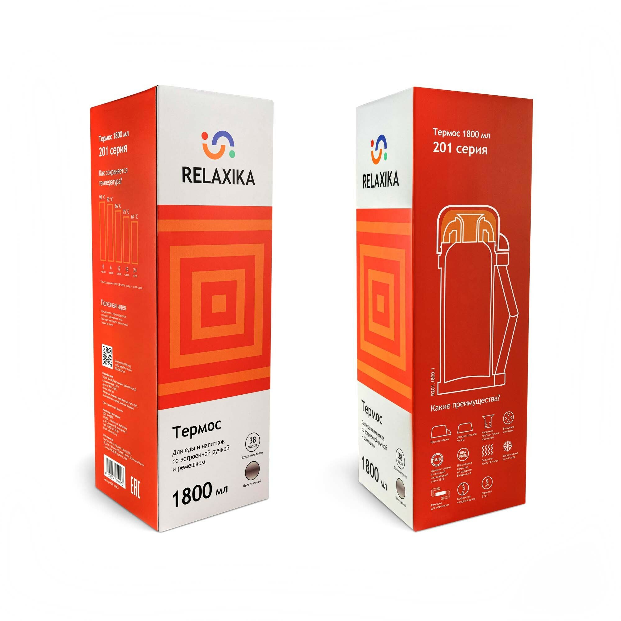 Термос универсальный для еды и напитков Relaxika 201 (1,8 литра), стальной, R201.1800.1