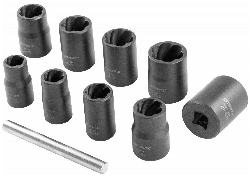 Набор головок спиральных THORVIK для поврежденного крепежа 3/8 10-19мм 10 предметов