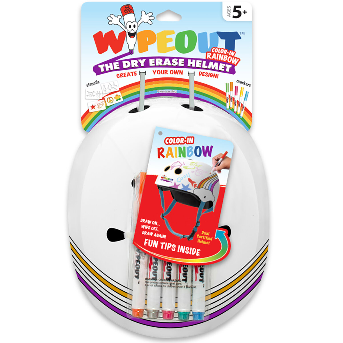 Купить Шлем для детей и подростков Wipeout White Rainbow, с фломастерами - белый. Размер M (5+), обхват головы 49-52 см.