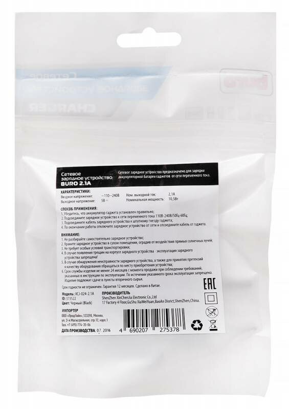 СохранитьСетевое зарядное устройство Buro XCJ-024-2.1A (373522) интересное: