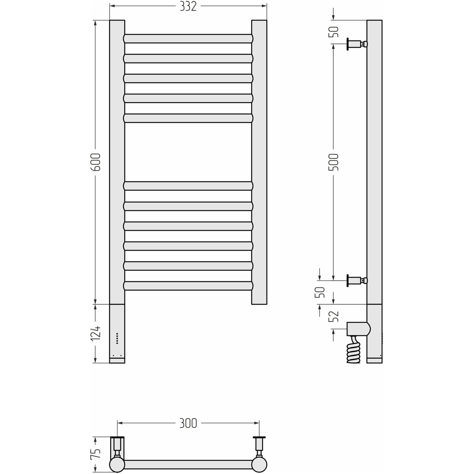Сунержа Полотенцесушитель электрический Сунержа 00-5804-6030 Богема 3.0 РЭБ, прямая, 600х300 мм/ МЭМ левый, без покрытия