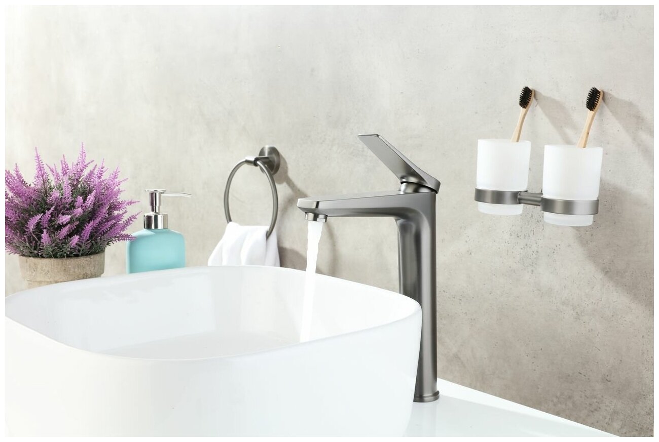 Смеситель Lemark Bronx Lm3709gm для умывальника высокий, монолитный, графит .