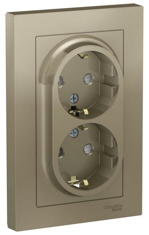 Купить Розетка 2-м СП AtlasDesign 16А IP20 с заземл. защ. шторки в сборе шампань | код ATN000526 | Schneider Electric (2шт. в упак.)