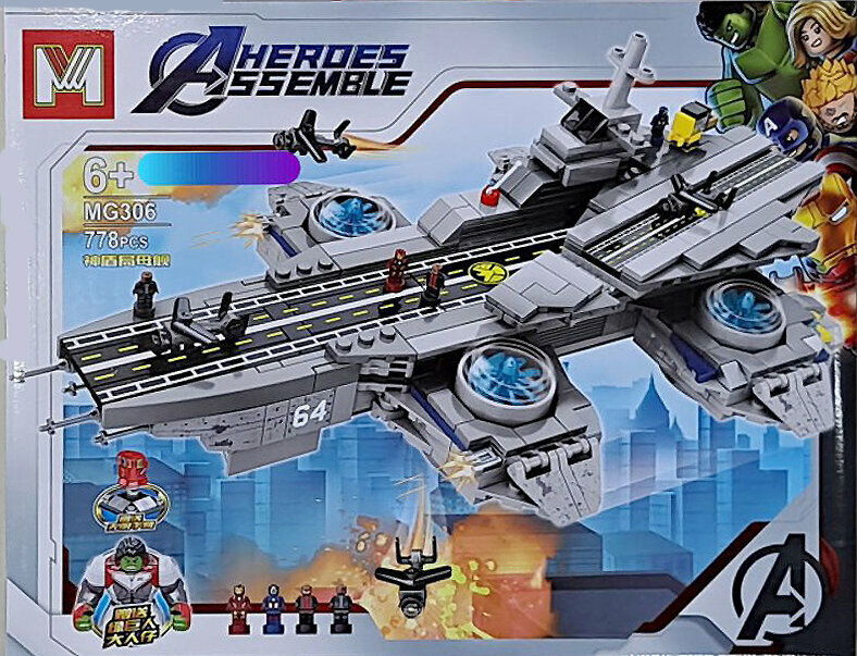 Купить Конструктор MG HEROES ASSEMBLE "Мстители: Летающий авианосец Геликарриер" MG306, 778 деталей