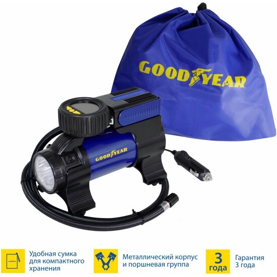 Автомобильный компрессор Goodyear GY-35L LED DIGITAL, 35л/мин, цифровой манометр, с фонарём, в сумке интересное: