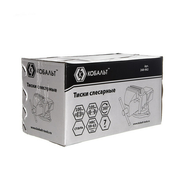 Тиски слесарные поворотные кобальт стальные, ширина губок 100 мм, захват 100 мм, 7 кг, на (248-962)