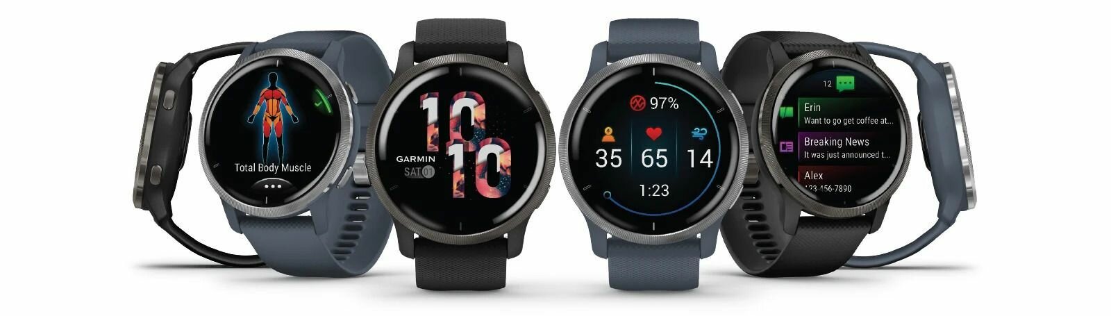 Умные часы GARMIN Venu 2, GPS, Wi-Fi, Black + Slate, WW (010-02430-11)