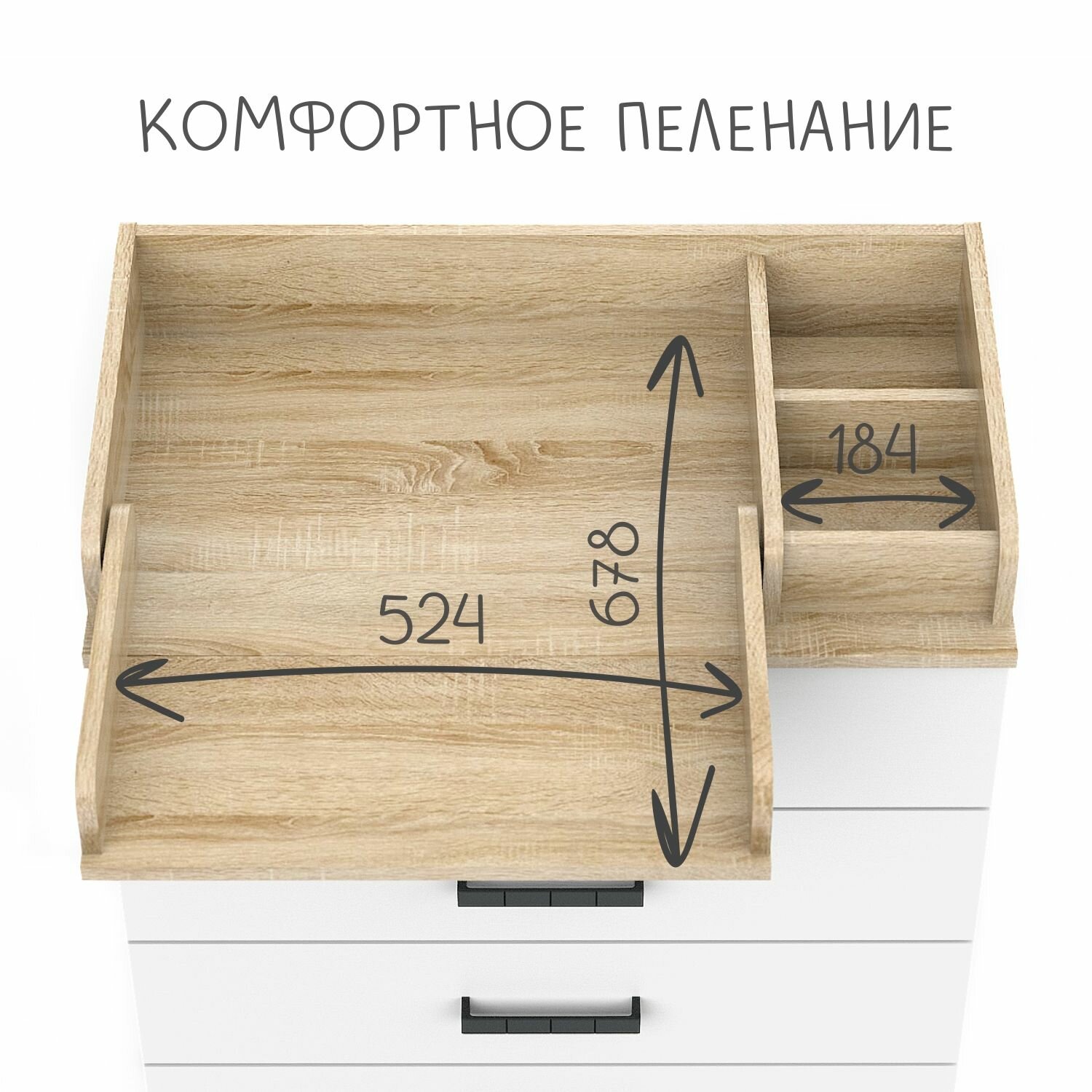 Комод детский с пеленальным столиком Сириус 604 полка ЛДСП, белый, 4 ящика