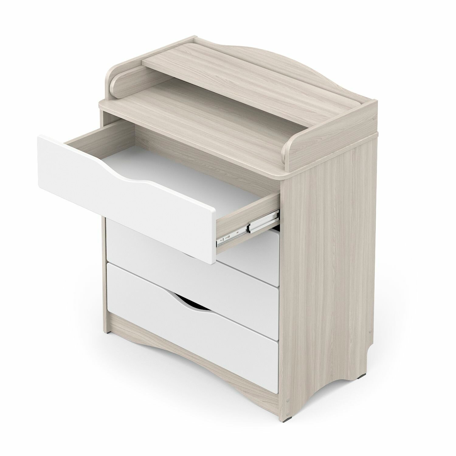 Детский пеленальный комод Атон Сириус 604 с ящиками и полкой, ЛДСП, шимо светлый, белый