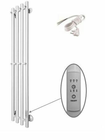 Полотенцесушитель Inaro Р120*6*018 (СНШ, Белый RAL 9016 (мат) , 3 секции по 3 вставки, Под скрытый монтаж. С таймером Ferrum, 8 крючков, Кабель с вилкой белый 90 см ; 8 крючков: 4 сверху, 4 посередине. Правое