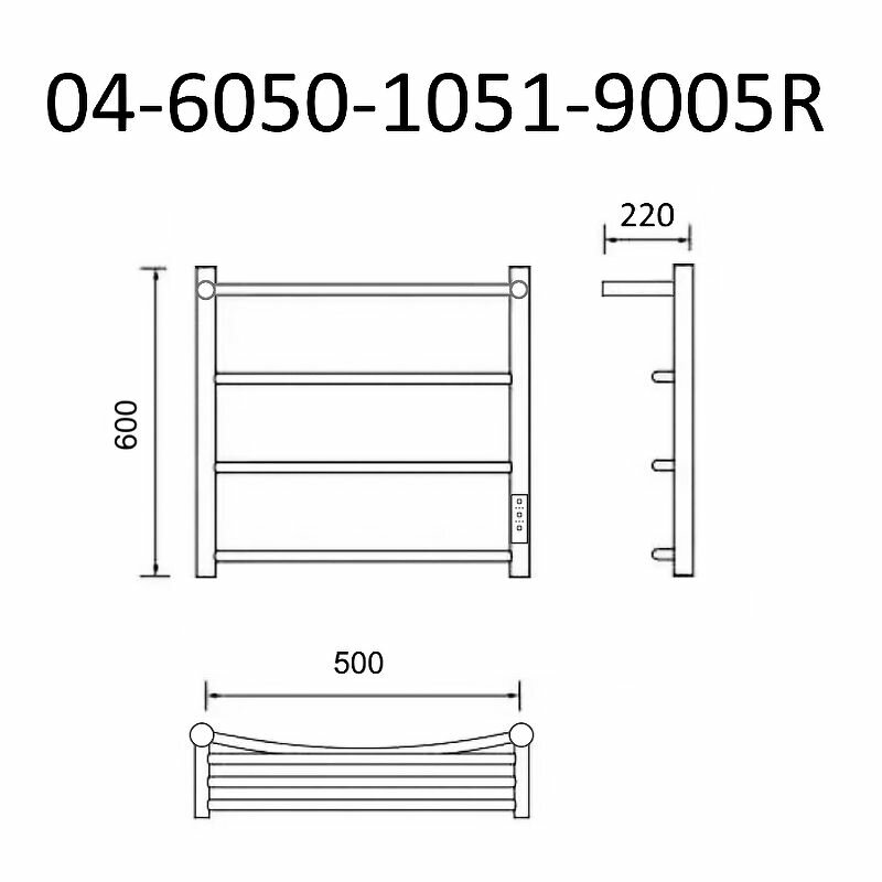 Купить Электрический полотенцесушитель Маргроид Вид 4 600x500 04-6050-1051-9005R правый с полкой Черный матовый