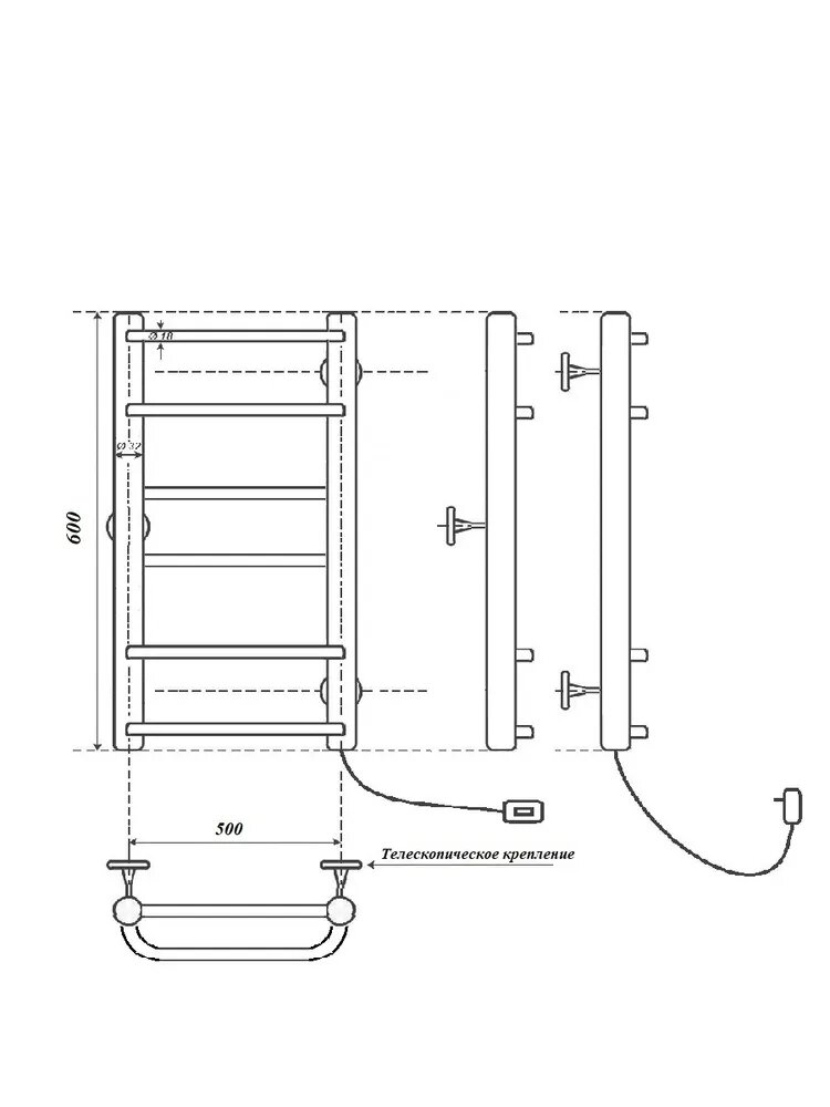 П/сушитель электр. Вид 9/10 600*500 мм П6, с кабелем правое, Маргроид, арт 4690569129562