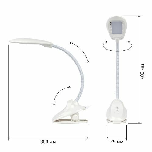 Лампа настольная для школьника светодиодная от сети на прищепке LED, 8 Вт, Эра