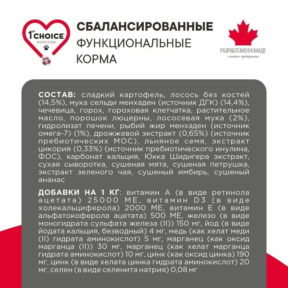 Купить 1st CHOICE GF DERMA - 340 г сухой корм с лососем для взрослых собак с гиперчувствительной кожей
