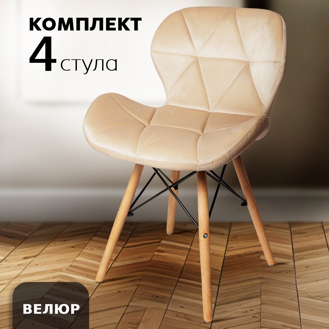 Комплект стульев для кухни из 4-х штук SC-026 светло-бежевый вельвет (G062-03)