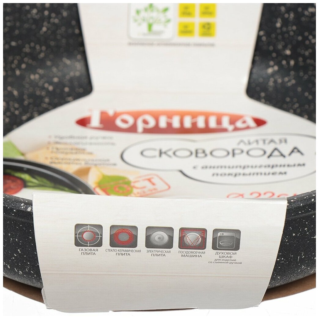 Купить Горница Сковорода антипригарная из алюминия 22 см, съемная ручка, Гранит