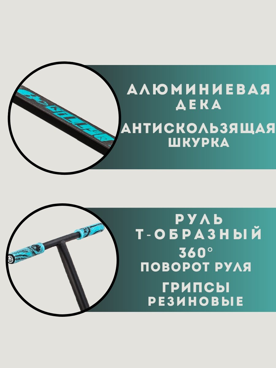 СохранитьТрюковой самокат ATEOX Killer черно-бирюзовый, 120 мм, скоростной, до 165 см, от 6+, до 100 кг, для подростков интересное:
