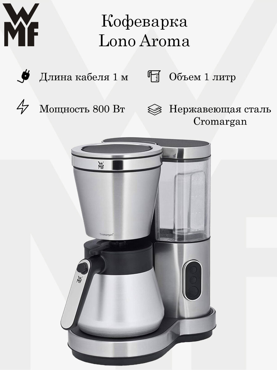 Кофеварка WMF "Lono Aroma", капельная, 800Вт, нержавеющая сталь интересное: