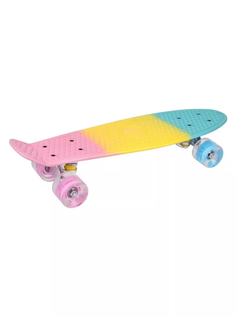 Пенниборд детский X-Match Х-Match 56,5х14,5 см, PU колеса со светом, голубо-желто-розовый (649106)