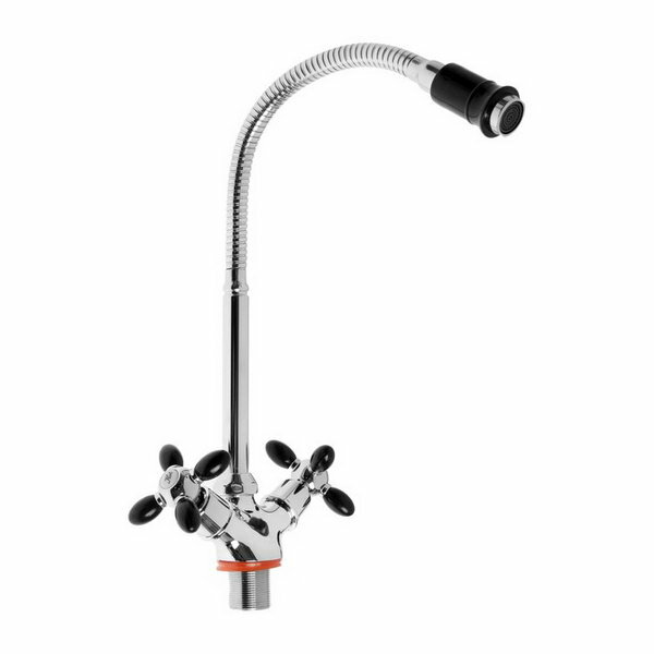 Смеситель для кухни ZEIN ZC2029, двухвентильный, гибкий излив, кран-букса латунь 1/2"