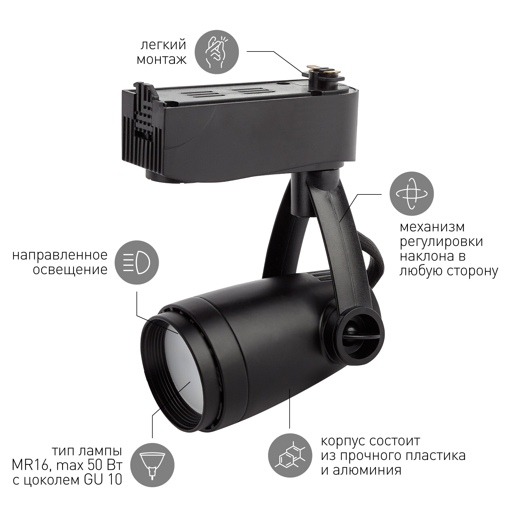Купить Трековый светильник однофазный ЭРА TR12-GU10 BK под лампу MR16 черный