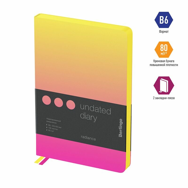 Ежедневник недатированный Berlingo B6, 136 листов, кожзам, "Radiance", желтый-розовый, градиент (UD0_93601)