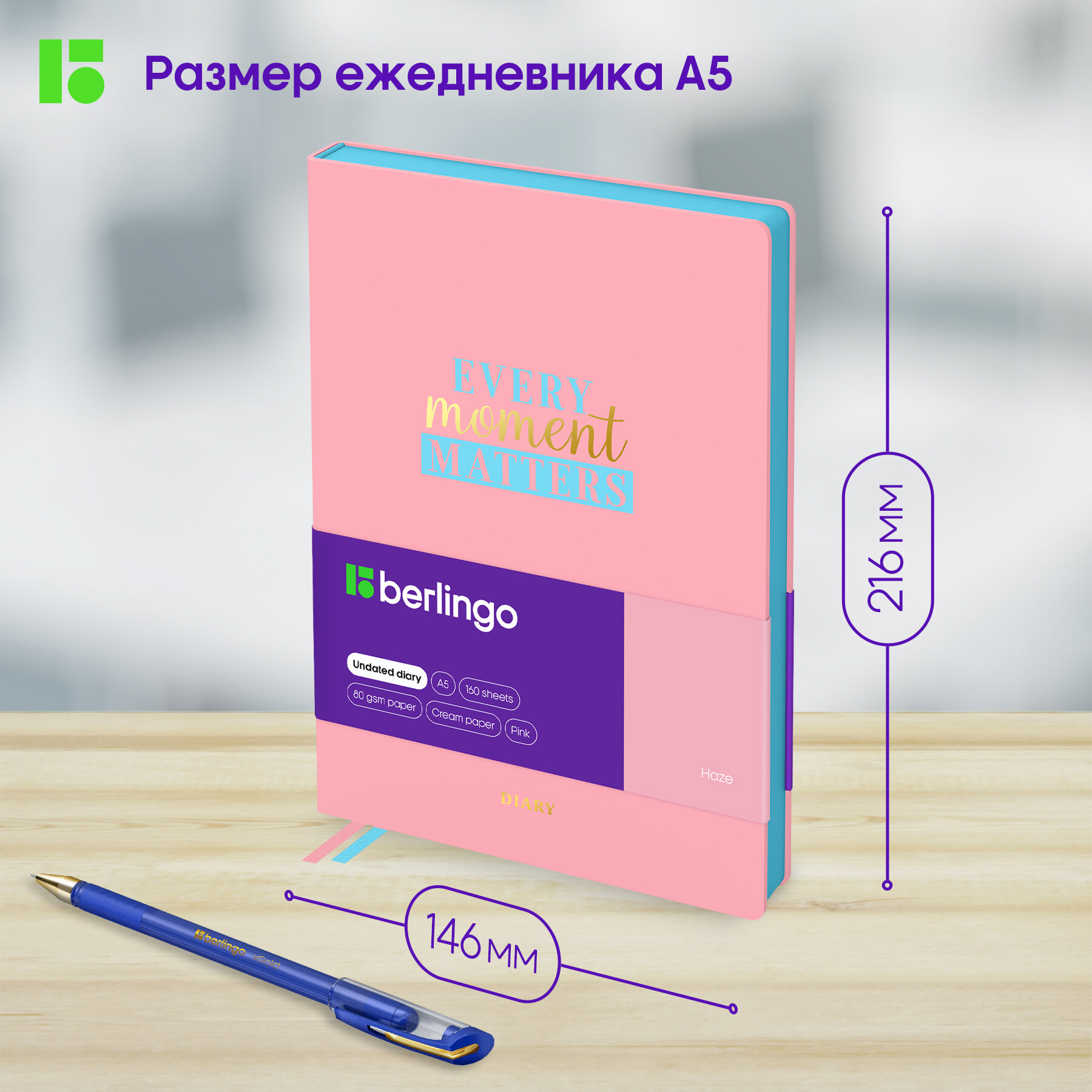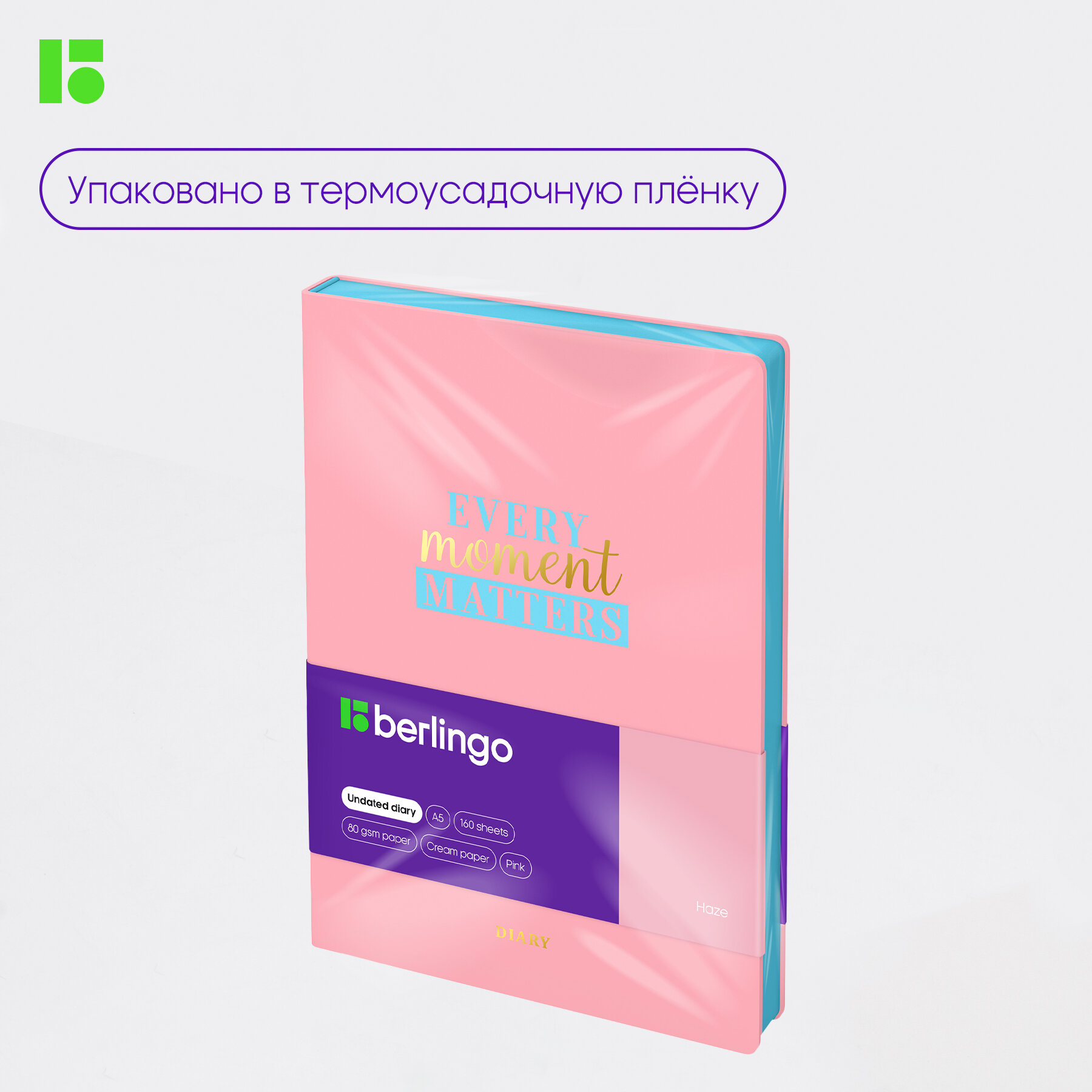 Ежедневник недатированный Berlingo А5, 160 листов, Haze, розовый срез, мятный, с рисунком UD2_95502