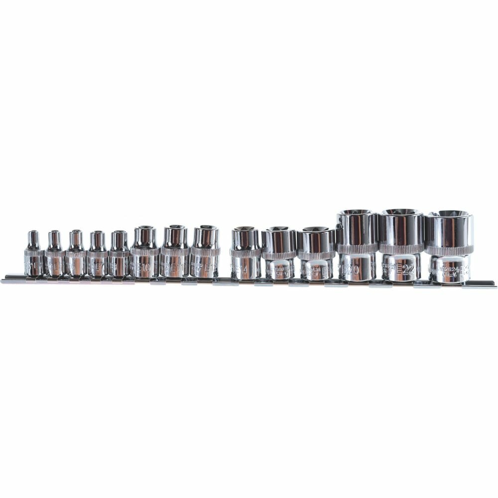 Набор головок торцевых 1/4", 3/8", 1/2"DR на держателе, внешний TORX, E4-E24,14 предметов