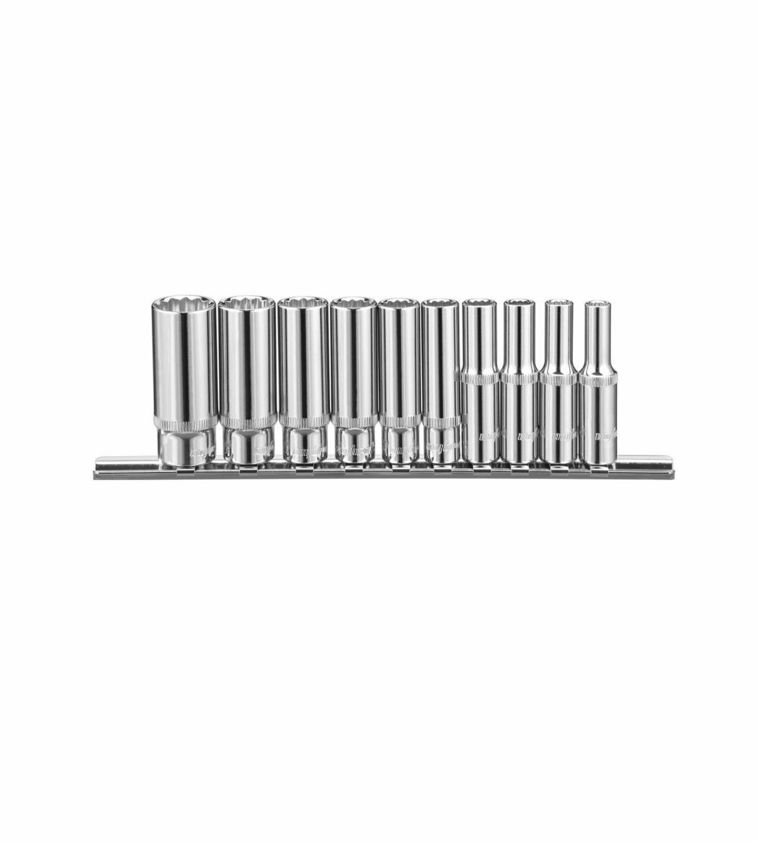 914910 Набор торцевых 12-гранных глубоких головок 1/4"DR, SAE 3/16”-9/16”, 10 предметов на держателе.