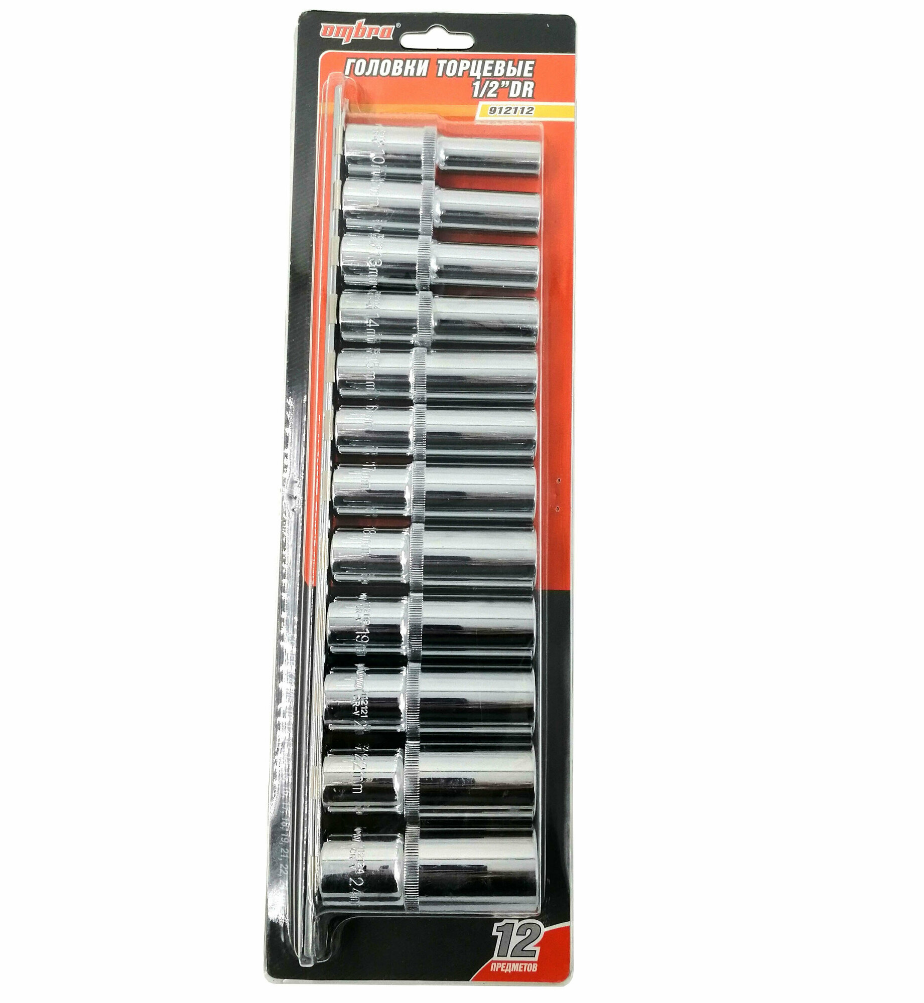 OMBRA 912112 Набор головок торцевых глубоких 1/2"DR на держателе. 10-24 мм. 12 предметов