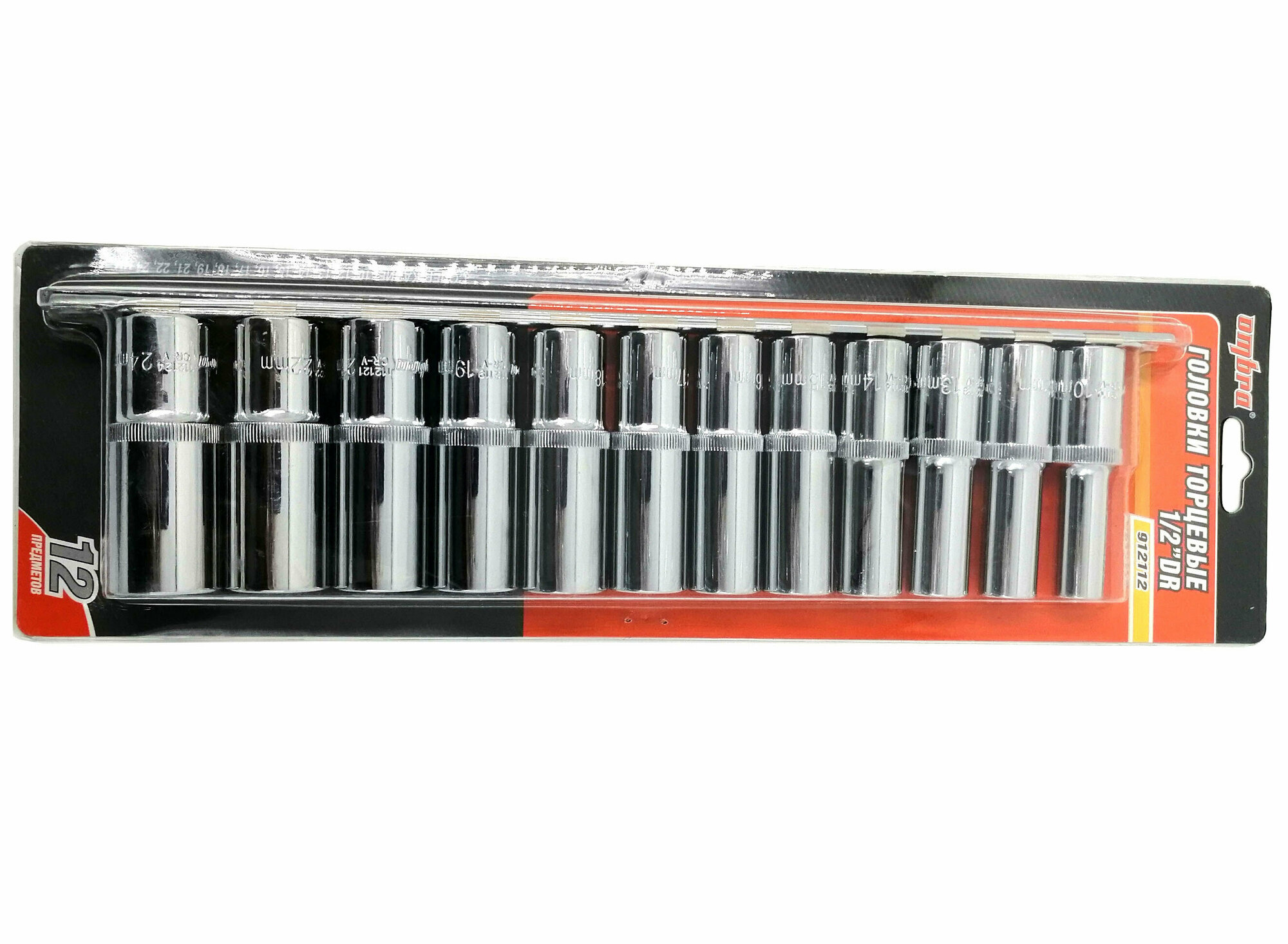 Ombra 912112 Набор головок торцевых глубоких 1/2"DR на держателе, 10-24 мм, 12 предметов