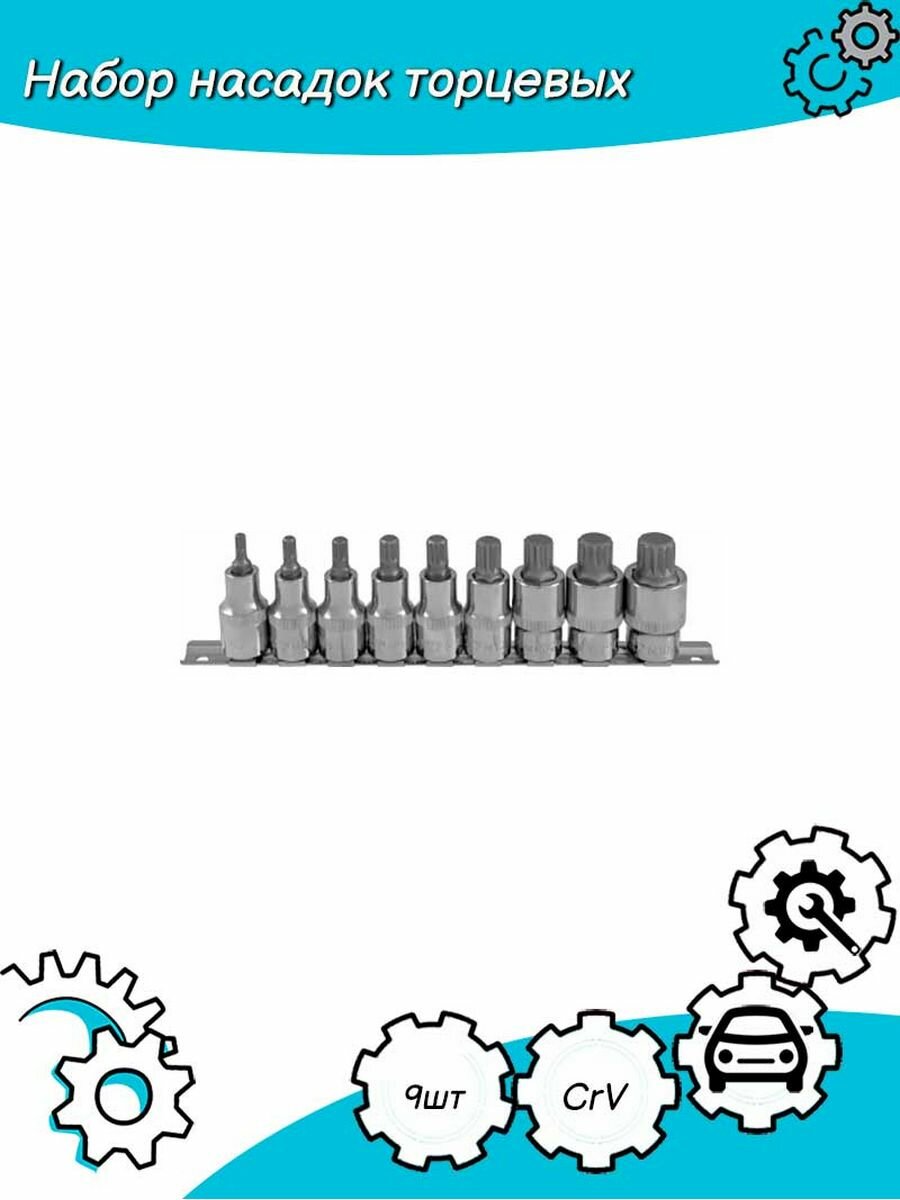 912779 Набор насадок торцевых 1/2"DR с вставками-битами SPLINE на держателе, M5-M18, 9 предметов