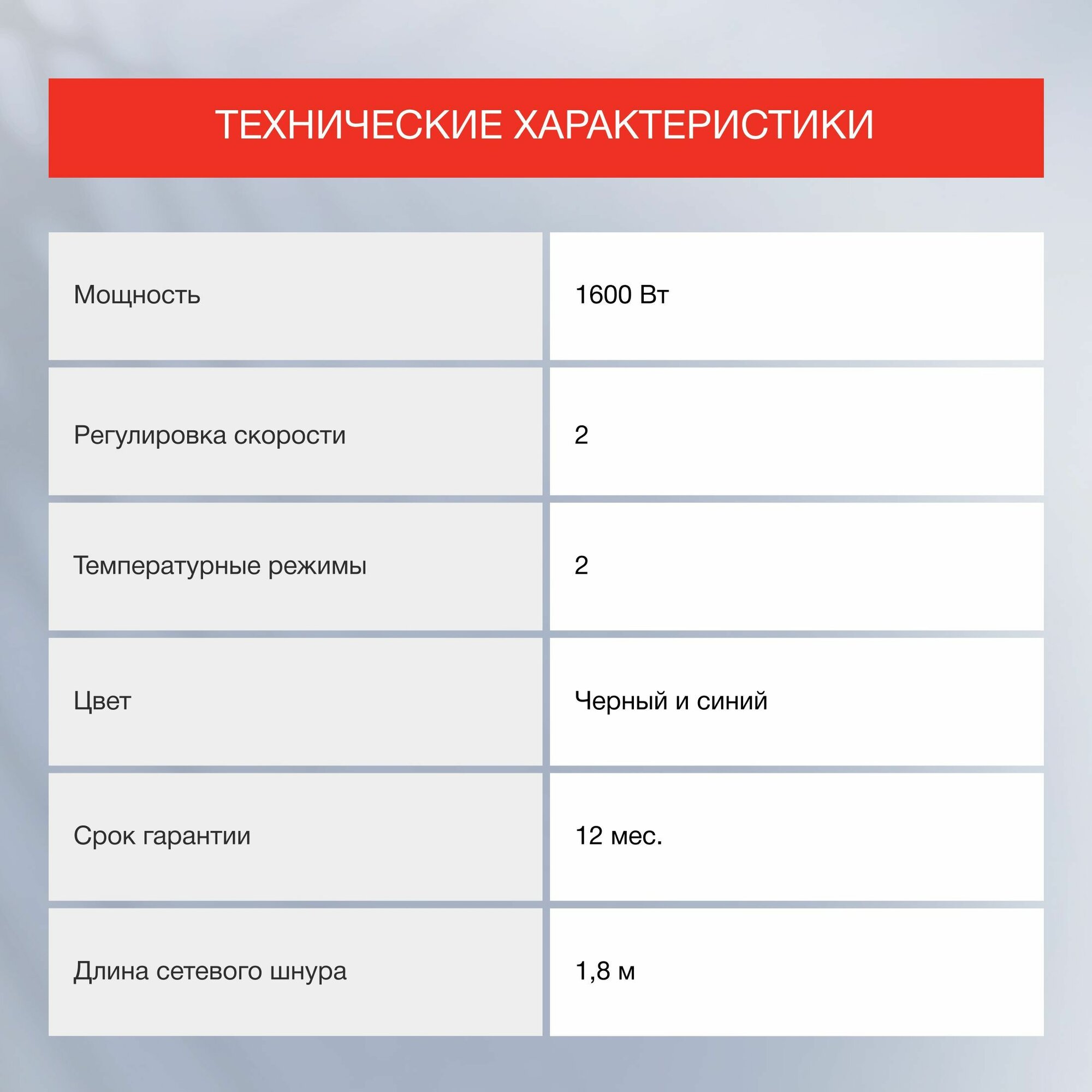 2) Удобный хват; 3) Длинный кабель; 4) Кнопка холодного обдува. |