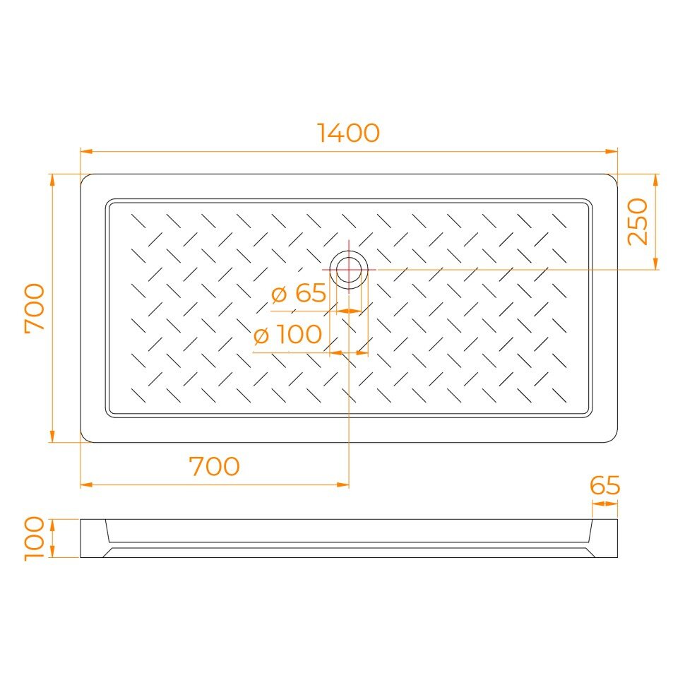 Душевой поддон RGW 70х140х10 см CR-147 , Прямоугол Ø60 Керамический Центральный слив (19170374-01)