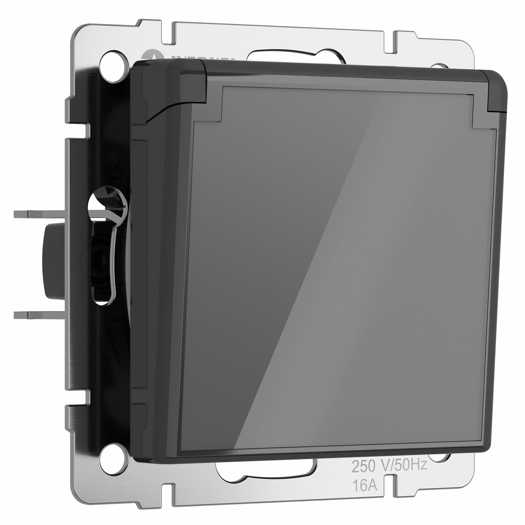 Купить Встраиваемая розетка с заземлением с защитной крышкой и шторками Werkel W1171244 графит акрил IP44