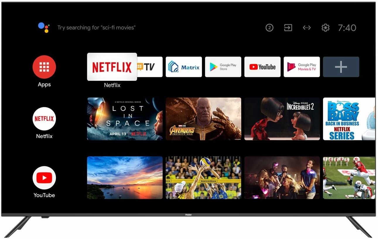 65" Телевизор HAIER Smart TV S1, 4K Ultra HD, черный, смарт ТВ, Android